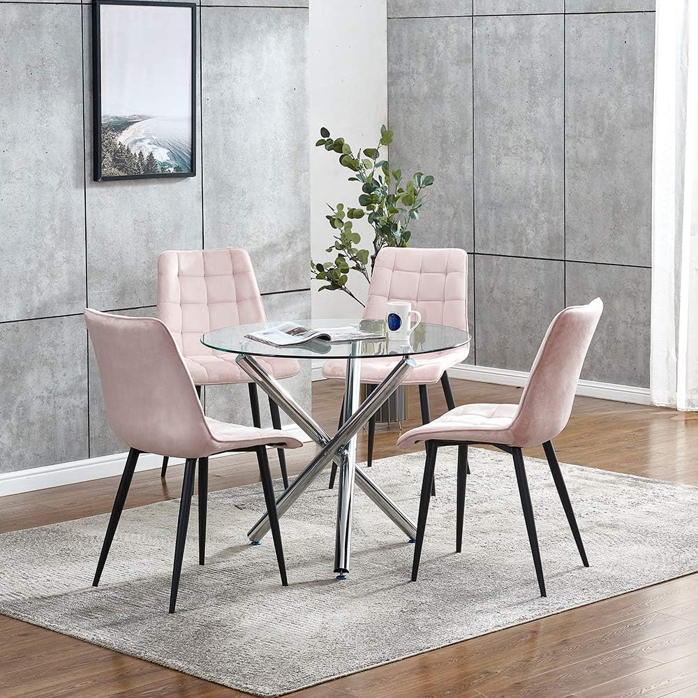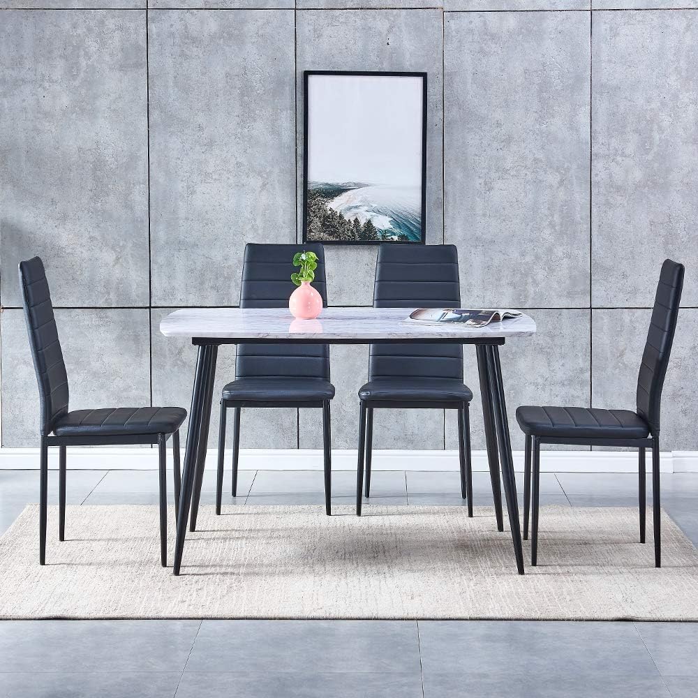 Carone upholstered side chairs black and chrome (set of 4). If you love the style but aren't keen on the blue, this chair is modern kitchen chair set of 4: If you want a more elegant look, you can introduce a little piece of european elegance to your home with a set of french country chairs. 5 piece counter height dining set kitchen table furniture set with 4 chairs dining room table and bar stools (black high back) rhomtree. Same day delivery 7 days a week £3.95, or fast store collection.